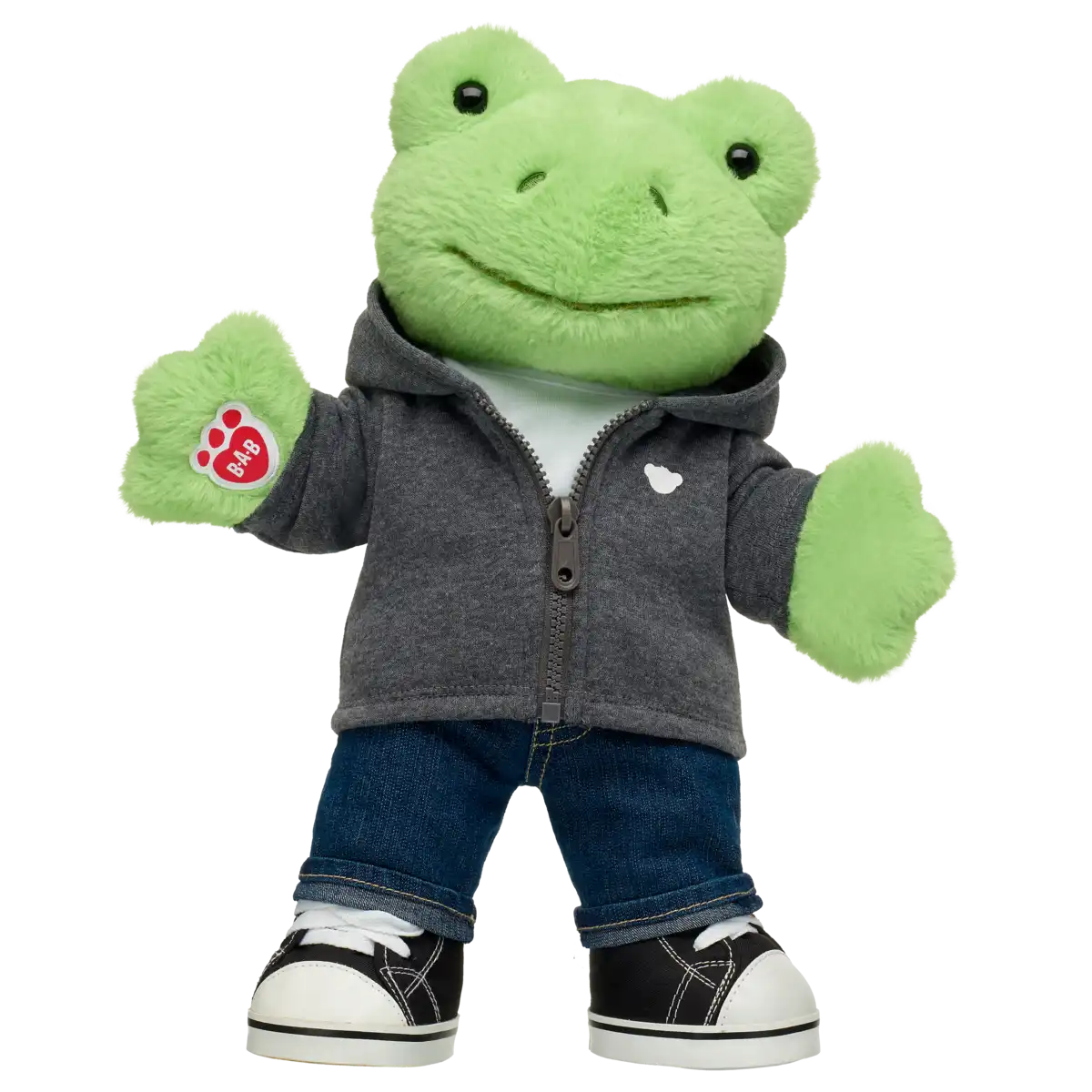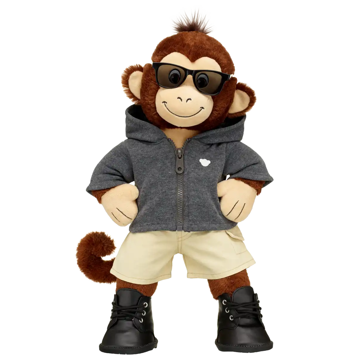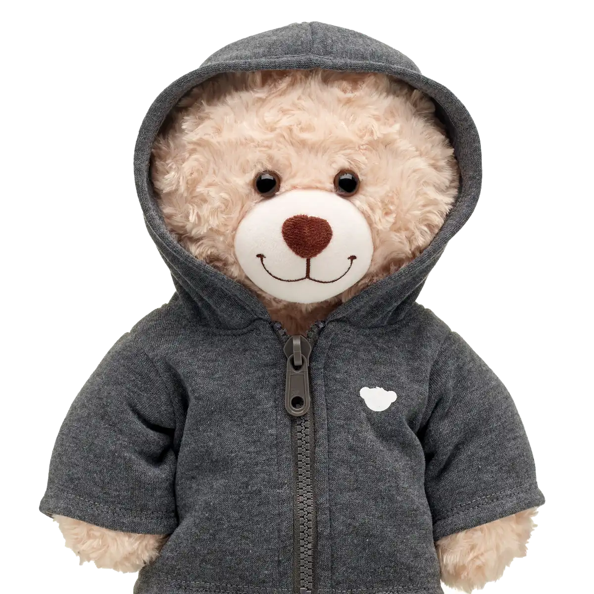 Opgrader din bamses hverdagsstil med denne mørkegrå hættetrøje med lynlås fra Build-A-Bear! Den mørkegrå hættetrøje med lynlås foran og ribkant ved ærmer og bund giver et moderne, afslappet look. Fremstillet i blødt bomuldsblanding, som både er behageligt og slidstærkt – perfekt til leg, hygge og alle dagens eventyr.