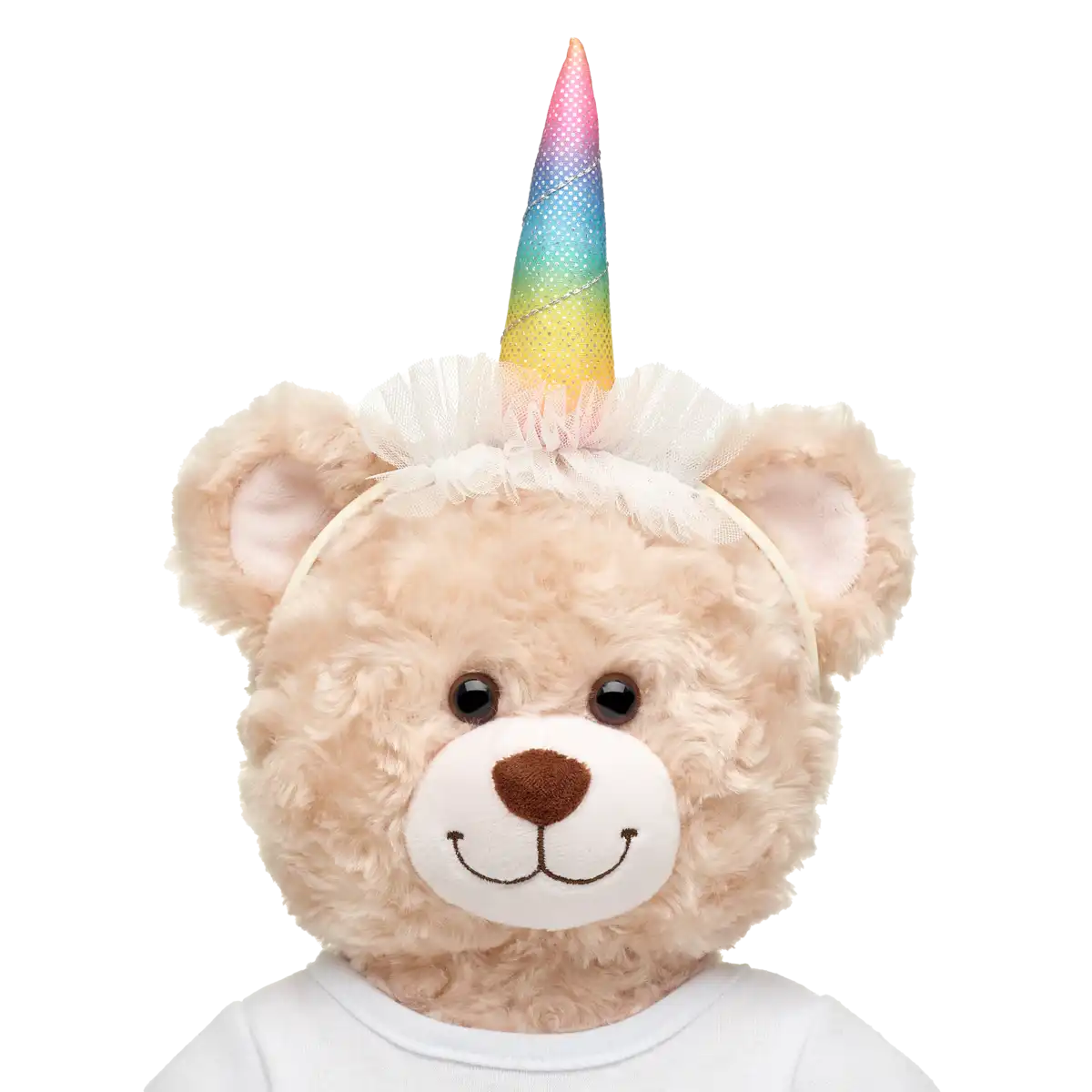 Forvandl din bamse til en magisk enhjørning med dette farverige regnbue-hårbøjle med horn og glimmerdetaljer!