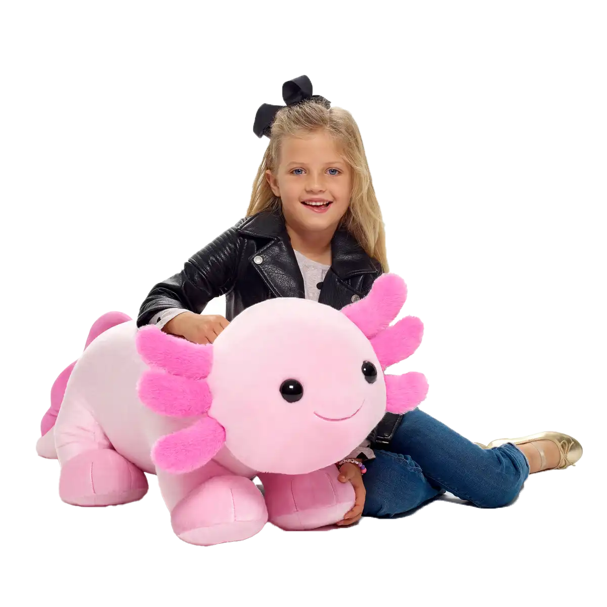 Giant Axolotl bamse – stor, blød og krammeklar! Denne kæmpe plysbamse er perfekt til børn, der elsker axolotler. Superblød, farverig og fuld af personlighed.