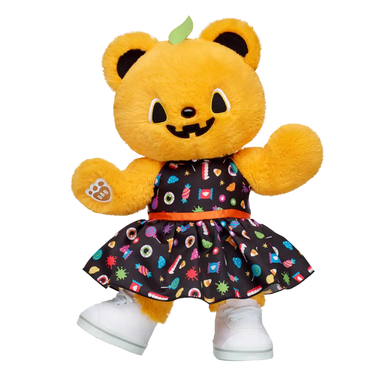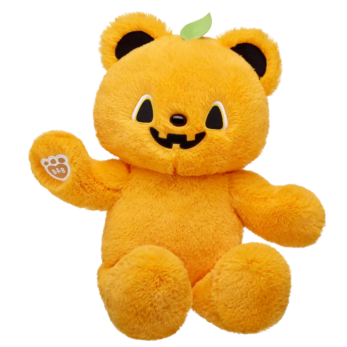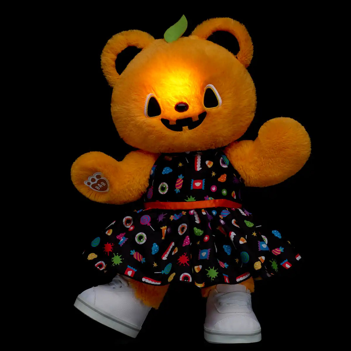 (U)hyggelig og lysende! Light-Up Pumpkin Bear spreder Halloween-glæde med et smil og et kram. Tryk på dens højre hånd, og se hovedet lyse op i et magisk skær.