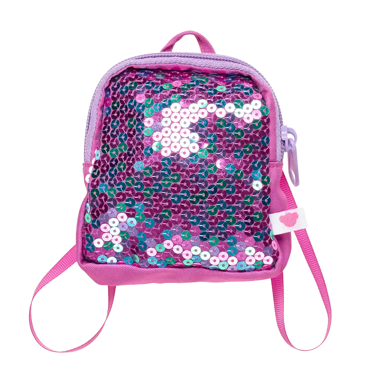 Multi paliet rygsækken med skinnende farver og justerbare stropper er det perfekte tilbehør til bamser, der elsker glimmer og leg.
