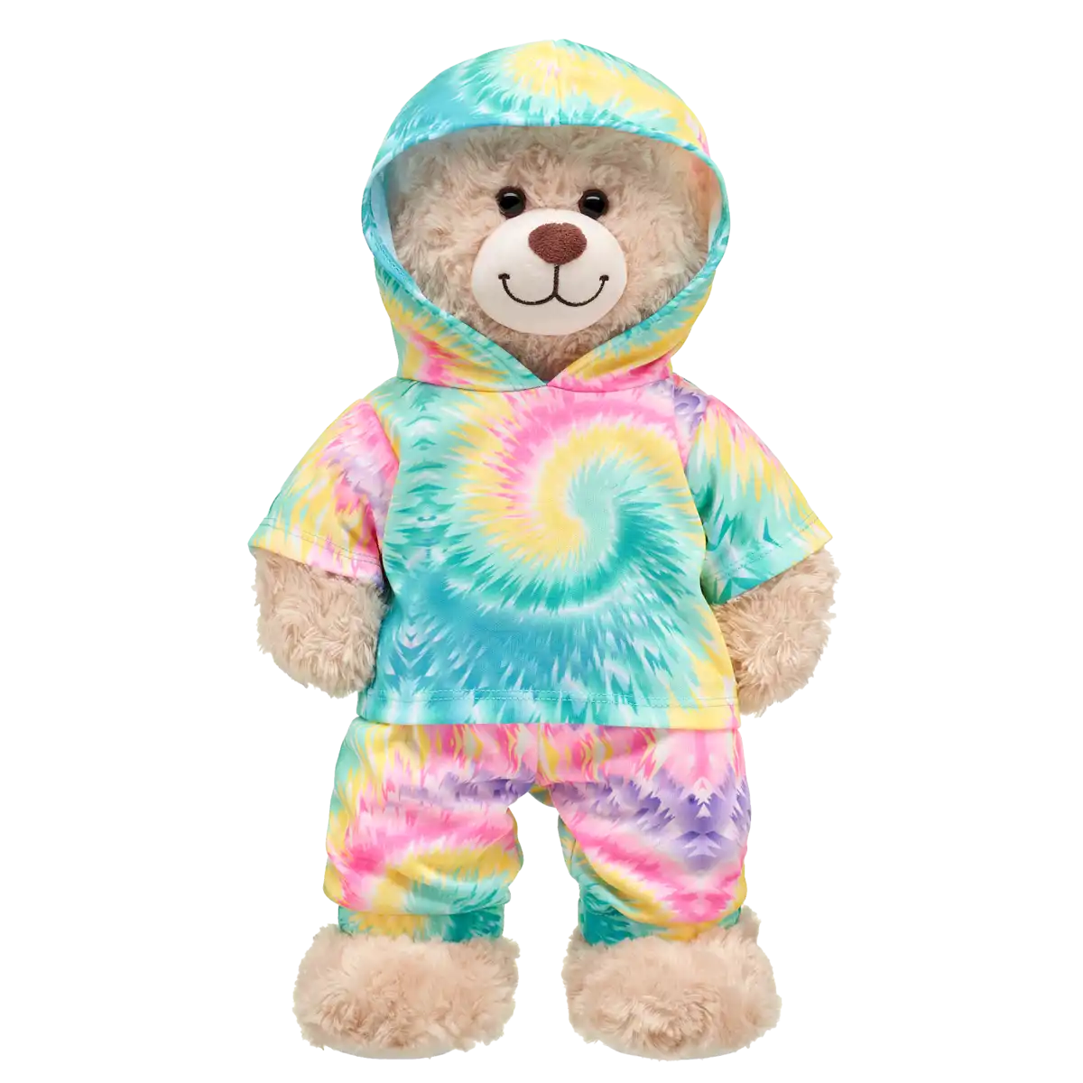 Klar til at sprede smil og farver? Vores Rainbow Athleisure Sæt er den perfekte måde at give din bamse et glad og farverigt look! Dette sæt kombinerer den klassiske tie-dye stil med et sporty snit, der gør din bamse klar til både leg og afslapning. Uanset om din bamse skal til fest, på eventyr eller bare hygge derhjemme, så er dette sæt et must-have!