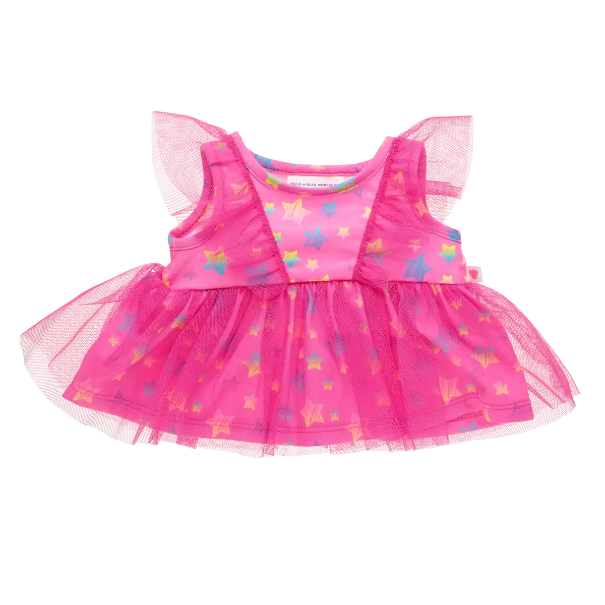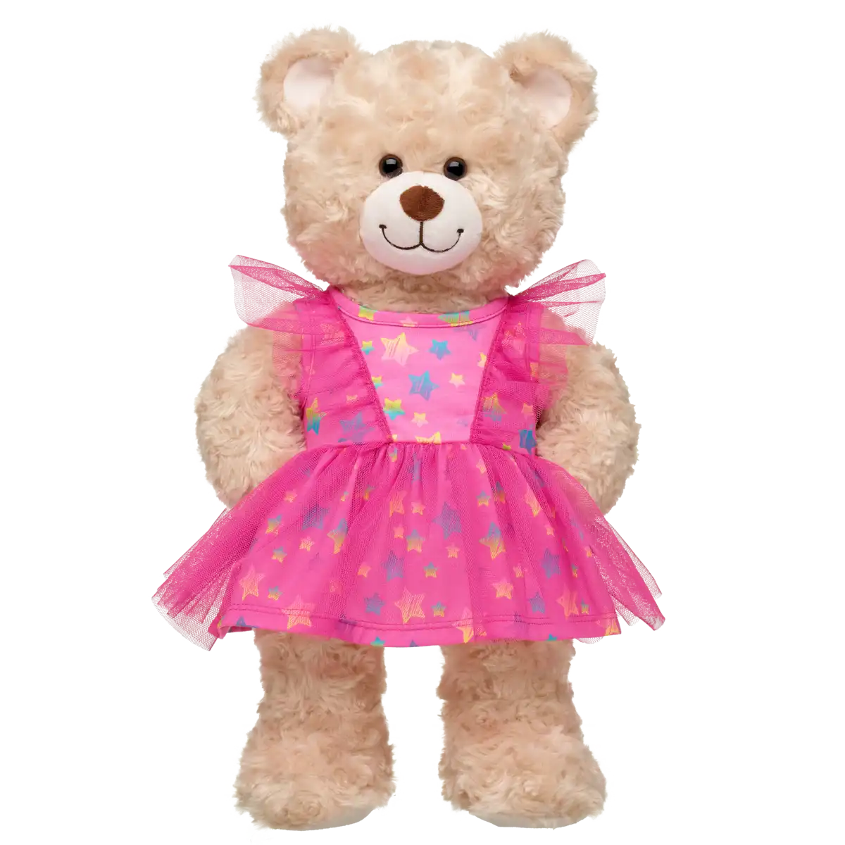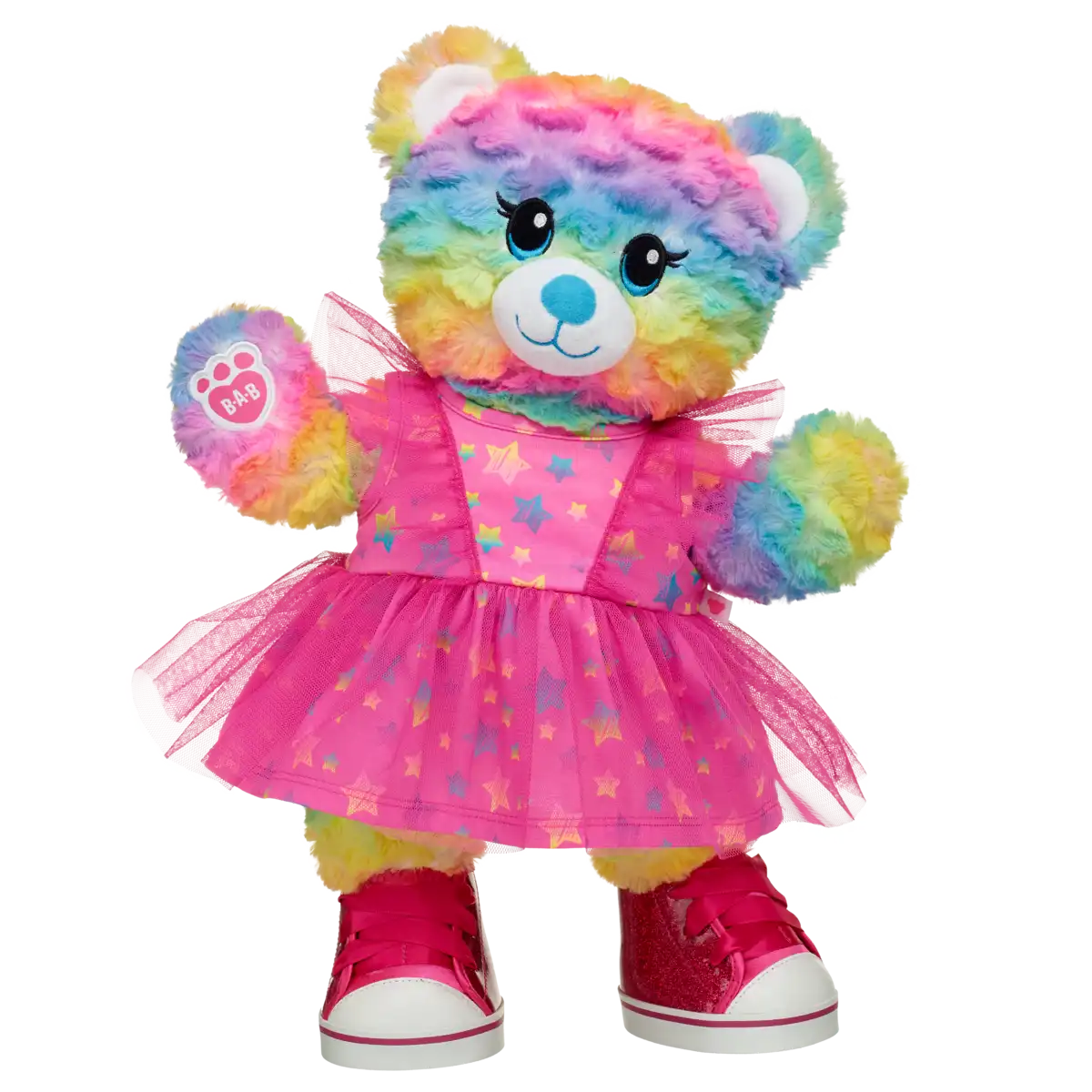 Lad din bamse stråle som en regnbue ved hver eneste kram! Vores Rainbow Tulle Kjole er et lille, magisk mesterværk – fyldt med funklende tyld med stjerne i alle regnbuens farver. Den er skabt til at få bamser til at swinge, dans og skinne til enhver begivenhed.