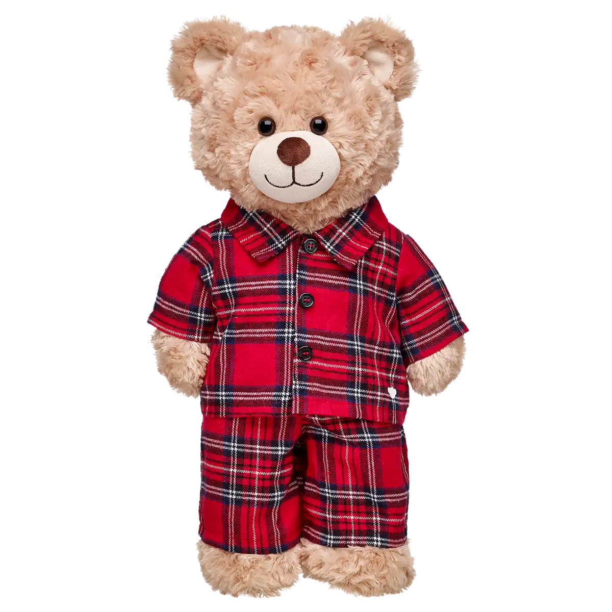 Gør dig klar til kram og godnat-historier med denne hyggelige Red Plaid Pyjamas! Det klassiske røde ternemønster giver et nostalgisk og varmt look, og pyjamasen er blød og nem at tage på – perfekt til din bamse, når det er sengetid eller bare tid til en lur i sofaen.