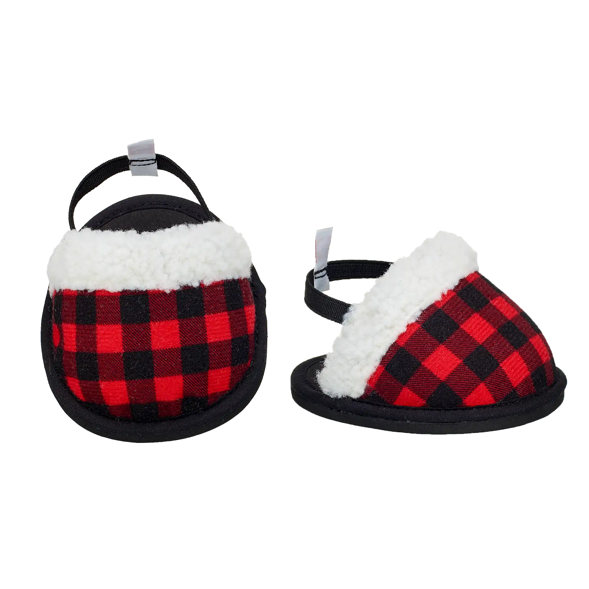 Rød ternet slippers til bamser – blød komfort og krammegod stil!
