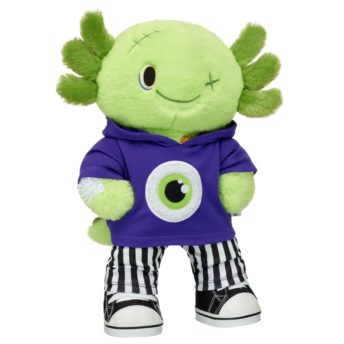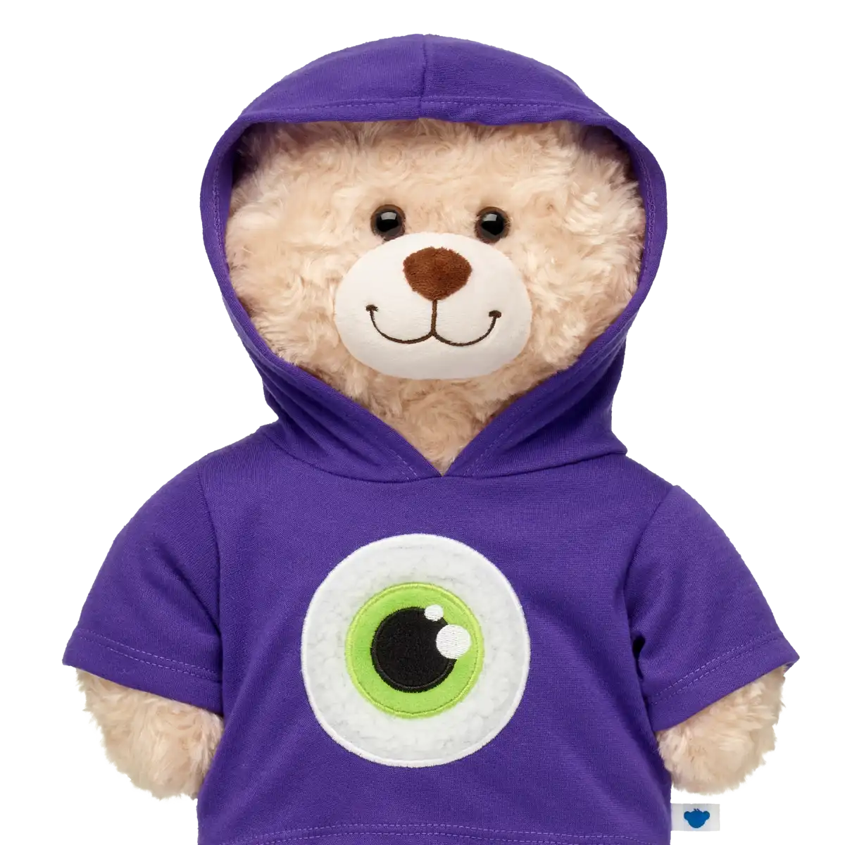 En spooky-cute hoodie med grønt slime-øje – gør din bamse klar til Halloween-kram!