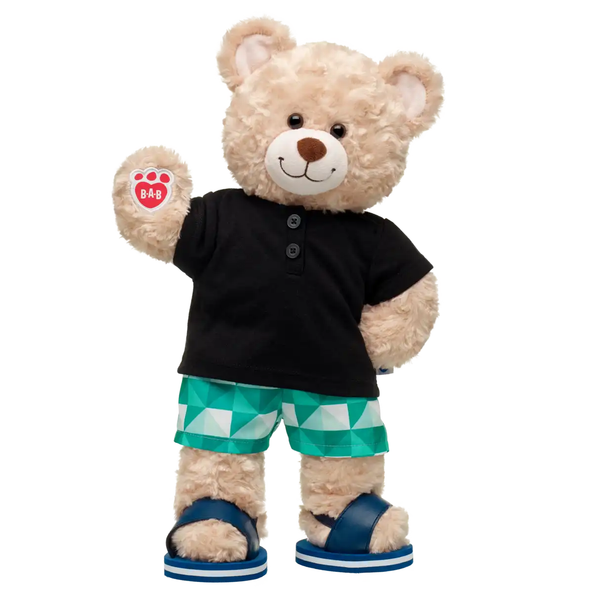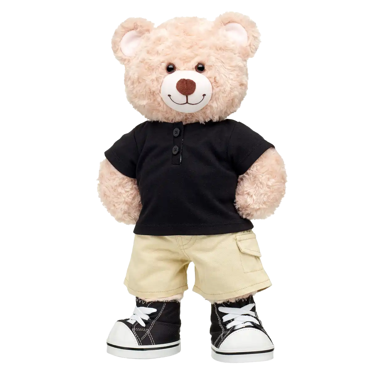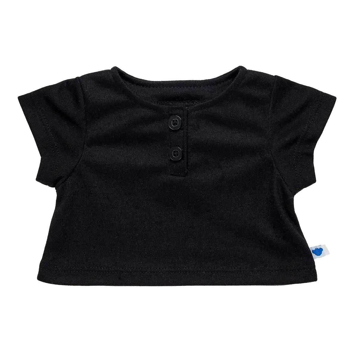 En klassisk sort T-shirt med knaplukning, der giver ethvert bamse-look et smart og afslappet touch.
