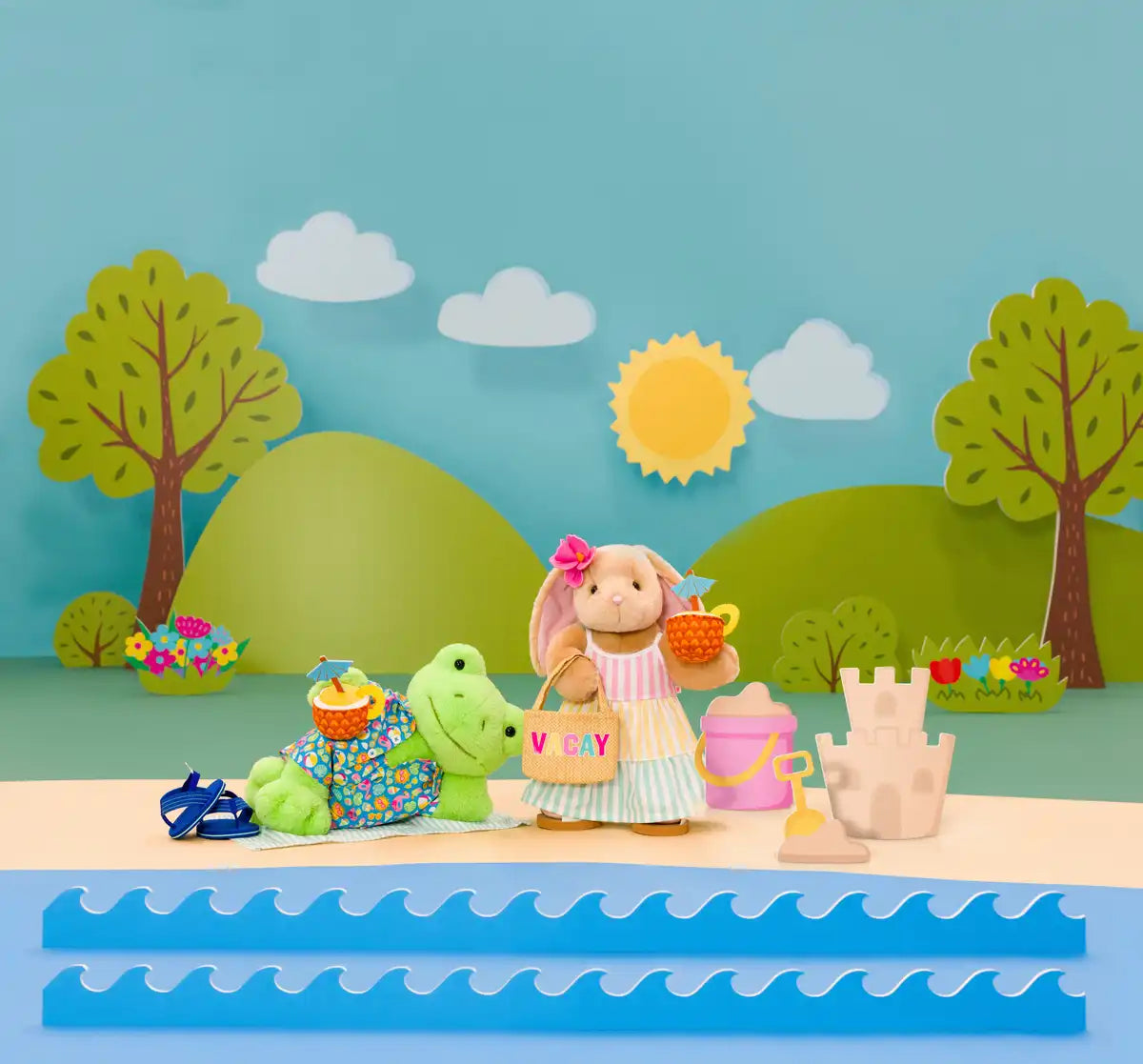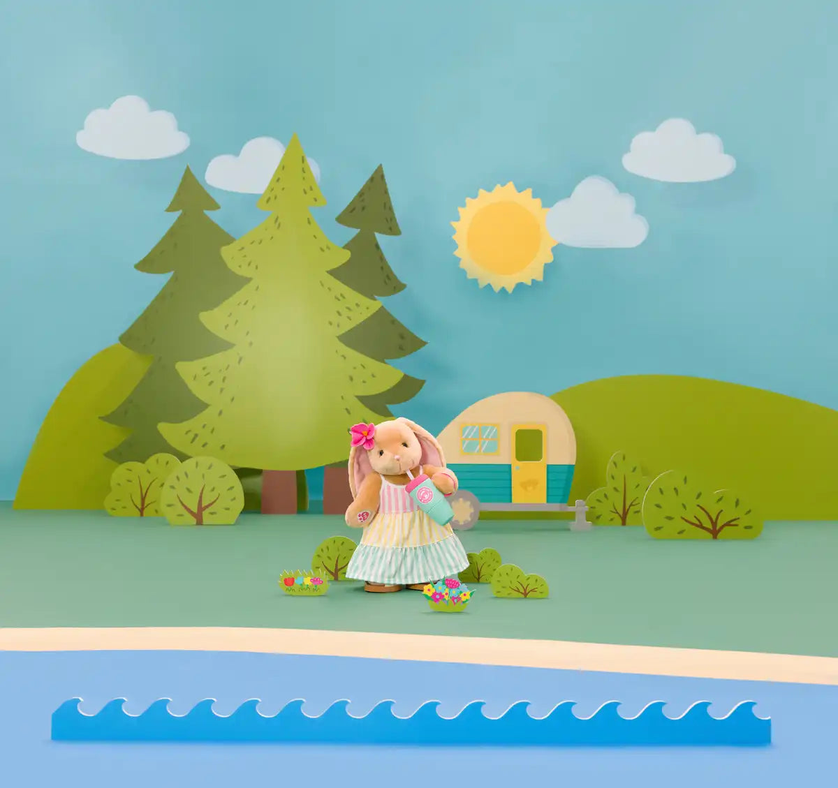 Perfekt til picnic, ferie eller en gåtur i solen. Kjolen er nem at tage af og på, og passer til alle Build-A-Bear bamser.