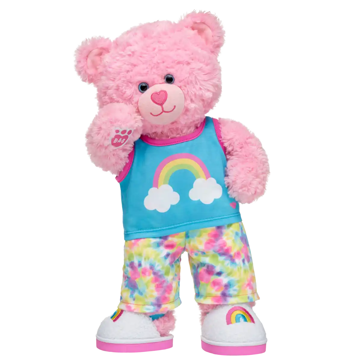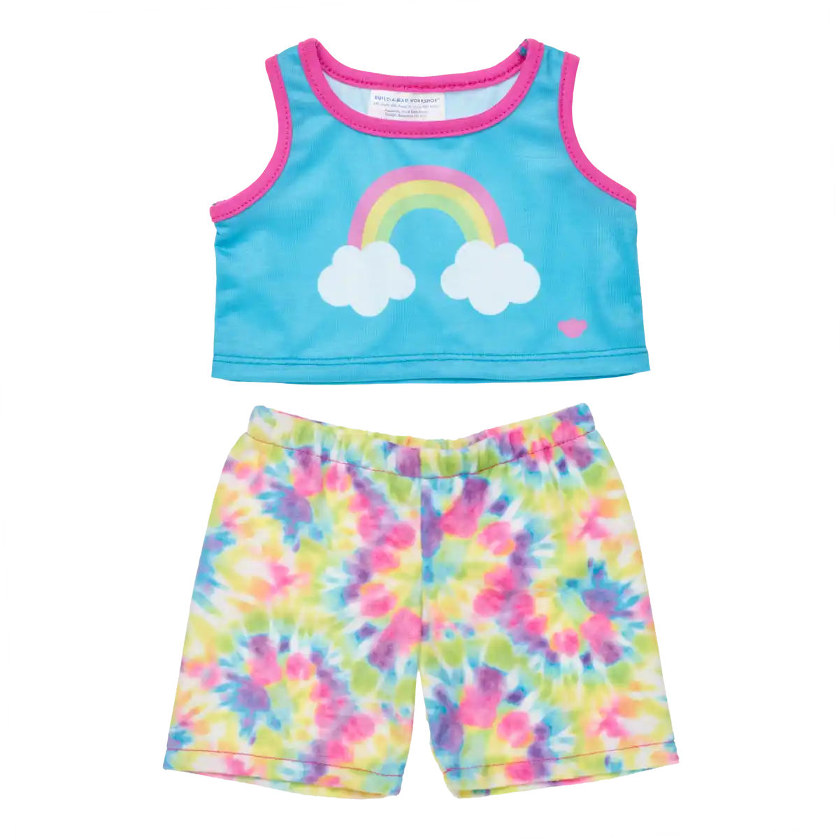 Tie Dye Pyjamas Sæt er et farverigt og blødt nattøjssæt til Build-A-Bear bamser, designet til hygge, leg og personlig stil.